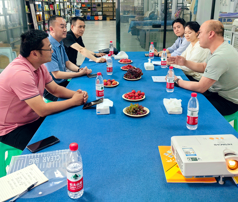 在重庆新泓宇商贸有限公司,董事长周平东陪同会长胡朝荣一行参观了企业库房和产品展区。重庆新泓宇商贸有限公司是重庆最专业的足浴用品配送服务商之一,现有各类产品1000余种,产品远销全国各地。为帮用户把好产品质量关,公司建立了新泓宇产品质量标准体系,并向有关部门申请了相关的质量认证,确保新泓宇的每一件产品能够保质保量。周平东建议协会多举办沙龙活动,让会员更多机会互相交流,让协会更加活跃。