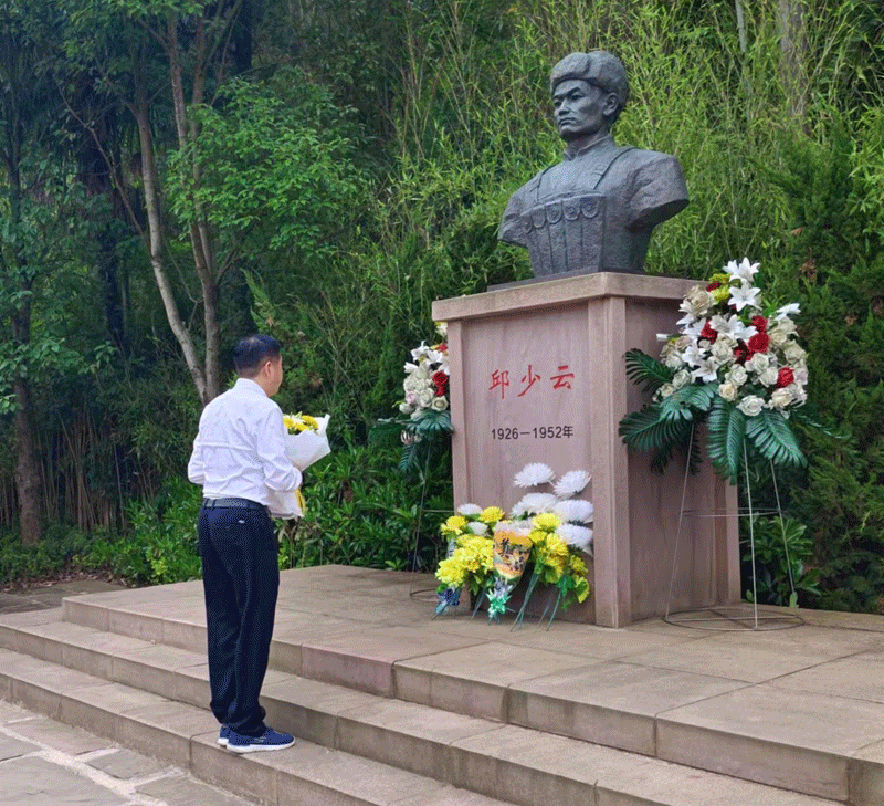 党员们参观了邱少云故居,聆听了邱少云英雄事迹的讲解,为邱少云雕像献花祭奠,并在邱少云雕像前重温入党誓词。