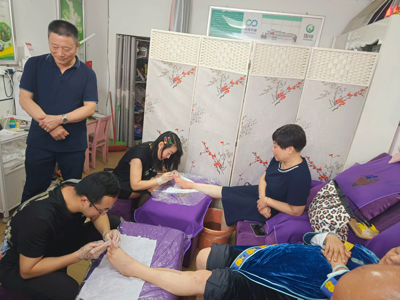 在会员单位创足记修脚店,副会长李远枚和周咏梅现场体验了创足记修脚店长叶东峰的修脚技术。叶东峰介绍,修脚行业夫妻店比较普遍,门店经营压力比较大,希望通过协会平台为行业中的小门店争取更多优惠政策。