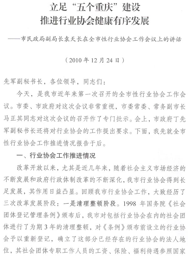 市民政局副局长袁天长在全市行行业协会工作会议上的讲话