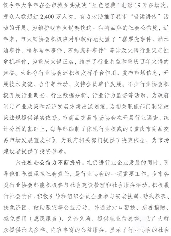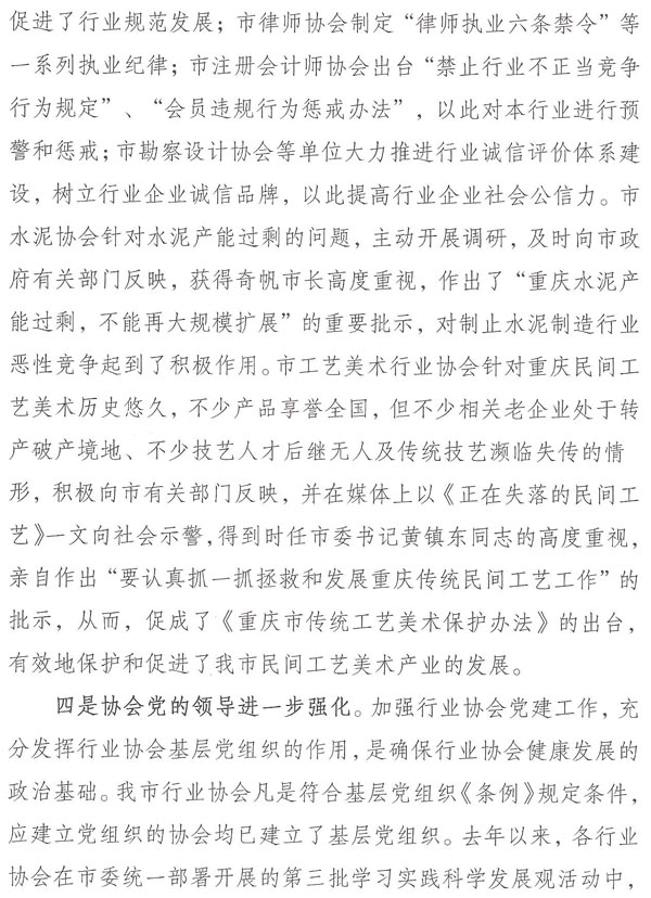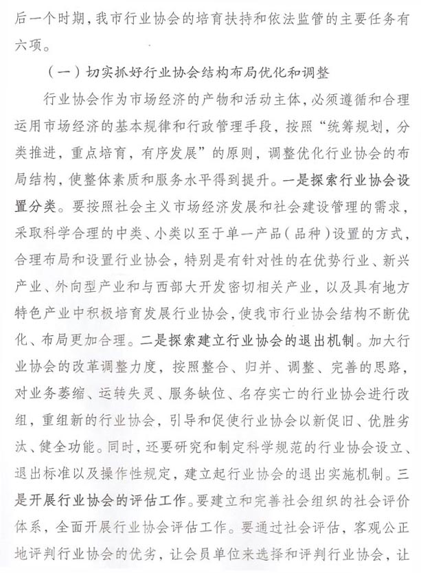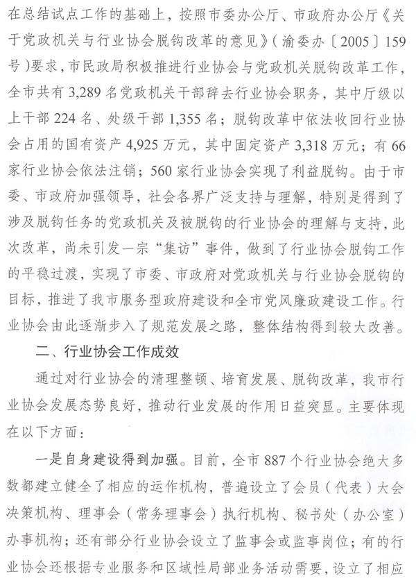 重庆市民政局关于表彰全市性先进行业协会的通报
