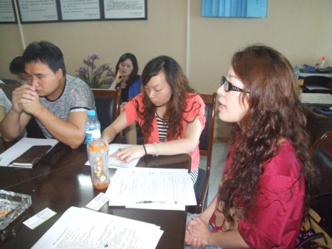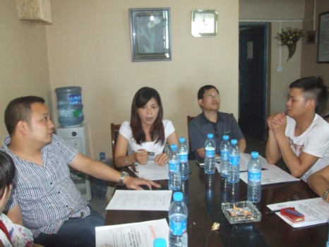 菩提元公司的杨经理(中间站立者)介绍了创建活动工作