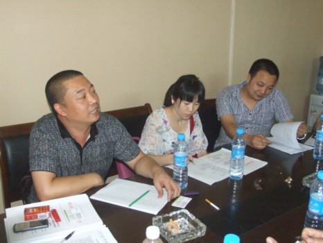 富侨文化宫店的胡经理(对面左一)提出了该店下步的活动工作