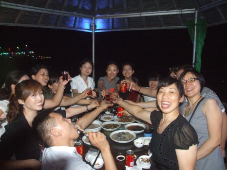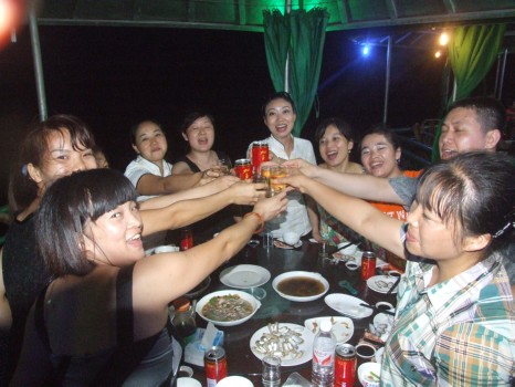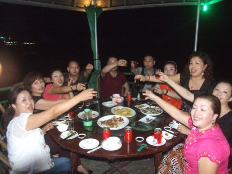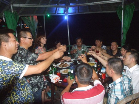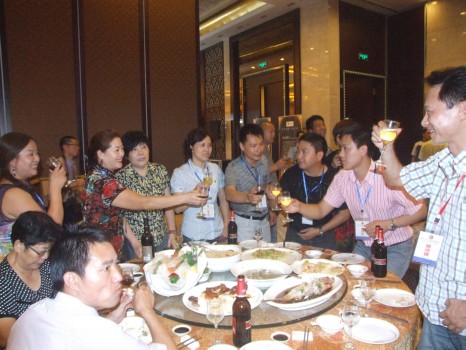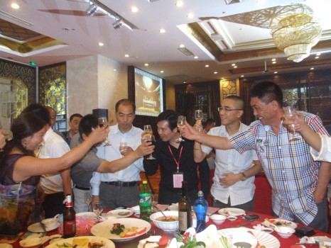 重庆团成员向朱金文会长(右一)敬酒致谢