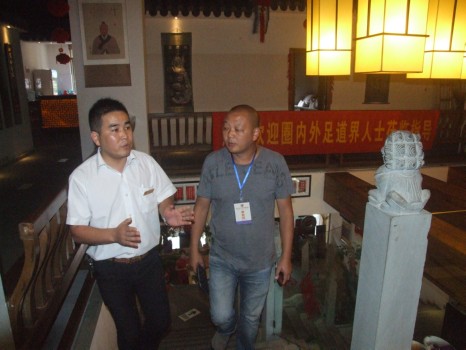 国家高级足部按摩师郑清伟(中)一行业者在温州市考察养生品牌企业