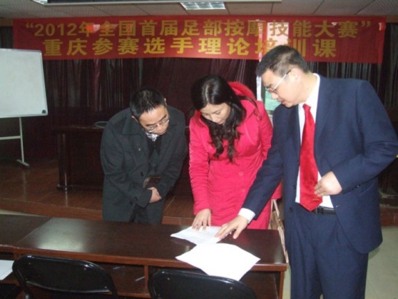 为了引导和促进我市足浴保健行业从业人员刻苦钻研技术,立足岗位成才,提高从业人员的素质和行业技术技能,促进足部按摩行业的健康稳定发展,重庆选拔优秀技师参加2012年全国首届足部按摩技能大赛。按照重庆市财贸金融轻纺工会和重庆市保健按摩行业协会“关于组织开展2012年全国首届足部按摩技能大赛重庆选拔赛的通知”精神,组织重庆参赛选手集中进行理论和实作方面的培训。