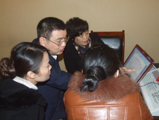 重庆市财贸金融轻纺工会胡显易主任(中)到培训点了解培训内容
