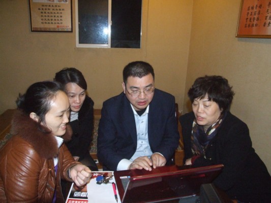 唐成林教授(左二)到綦江区港天公司辅导参赛选手