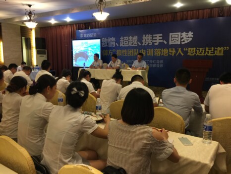6月16日,由重庆思迈足投资有限公司主办的“思迈足道2016首届狼性风暴例会内训”在龙豪度假村酒店隆重举行。此次培训针对公司本部、各门店管理人员、门店优秀员工等,课程为《超级无敌影响力之天龙八部》、《狼性团队打造》、《感动服务》等落地式培训;其庞大的培训内容、经典的培训课程、风趣易学的授课方式都无不体现公司将“思迈足道”品牌打造“三年做唯一,五年做第一,十年创百家” 的宏伟战略目标之决心和信念!