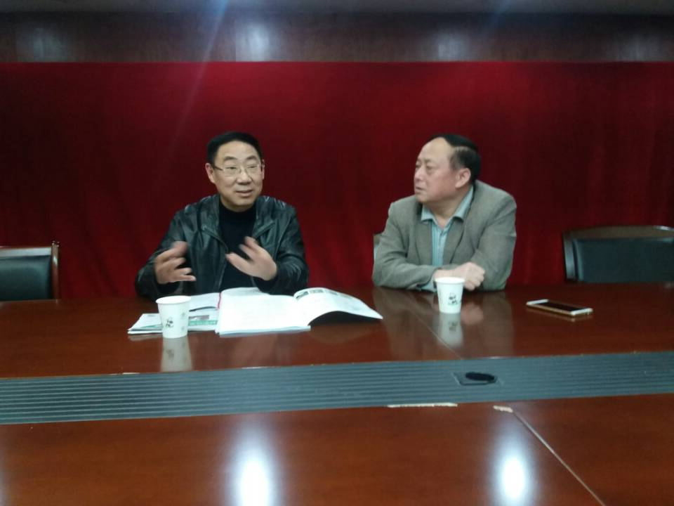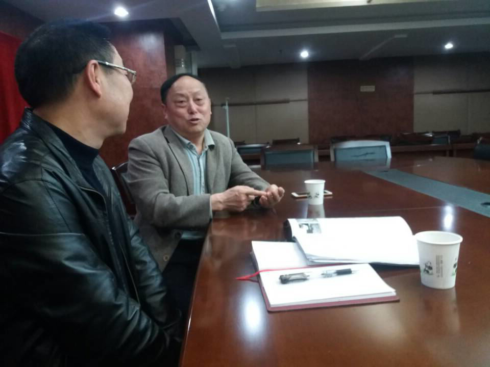 薛建泰同志向杨松主席(左)全面的介绍了保健服务行业及行业协会的情况
