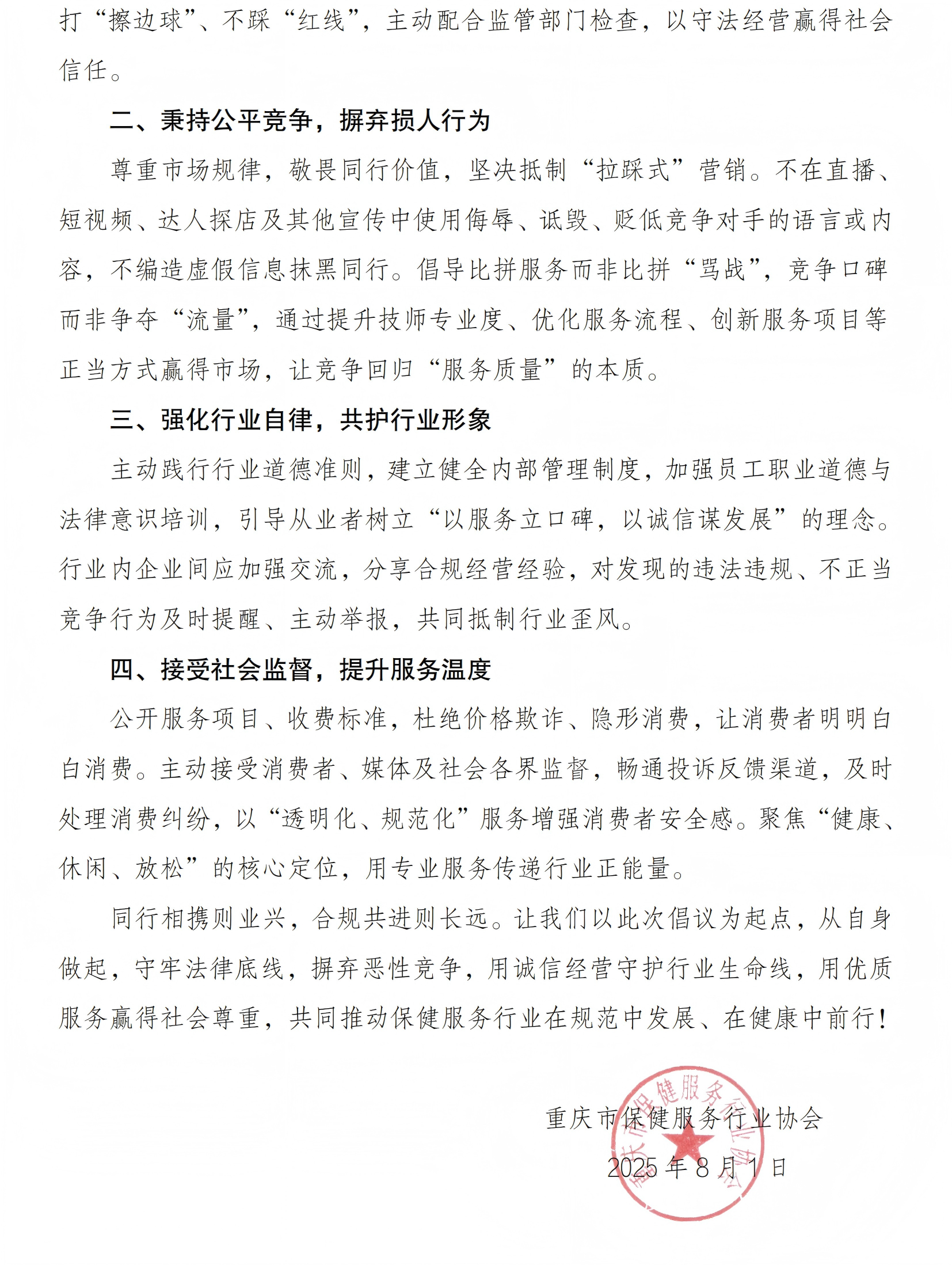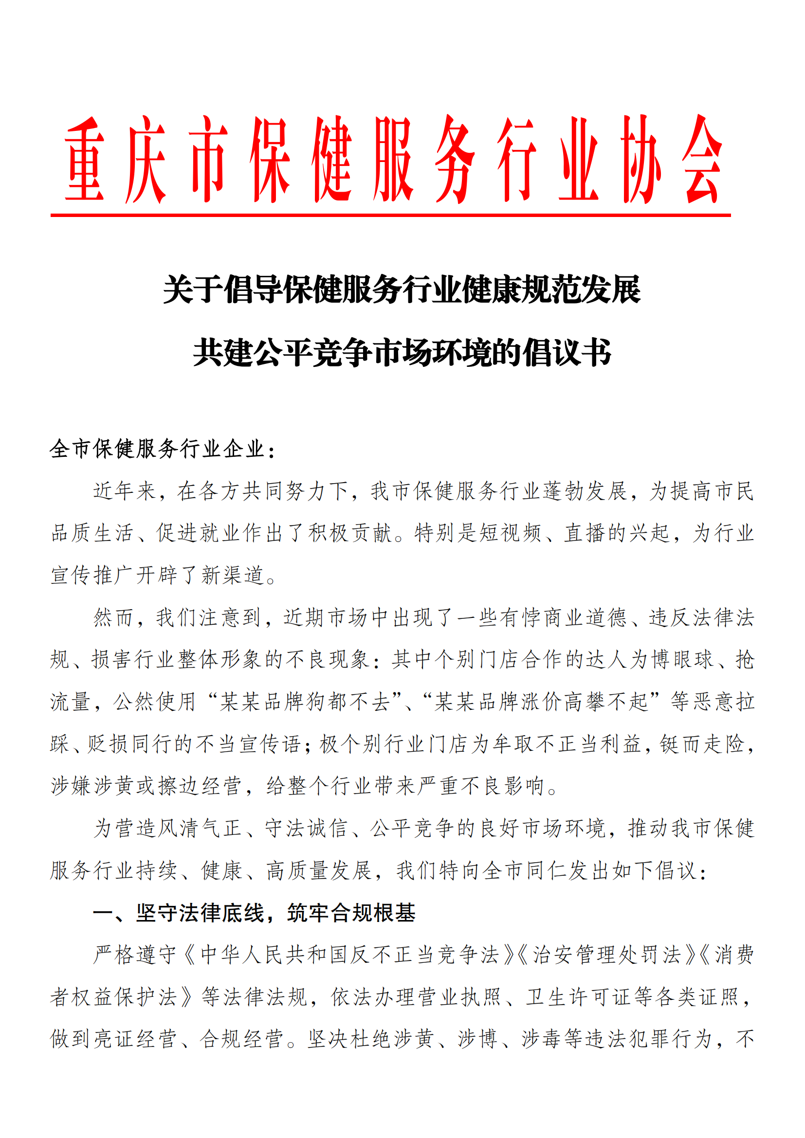 倡议书|关于倡导保健服务行业健康规范发展共建公平竞争市场环境的倡议书