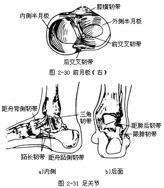 (4)关节韧带 分布在关节周围或关节内。具有连结两关节骨,限制关节运动的作用(如图2—22)。