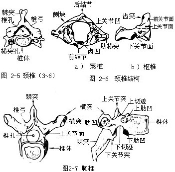 ①第三至第六颈椎的横突上有横突孔。棘突有分叉(如图2—5)。