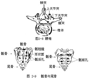 ⑧腰椎椎体最大,棘突呈板状(如图2—8)。