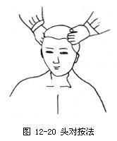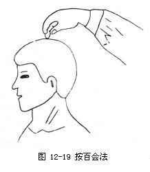 2.手法操作术者以拇指腹自素穴起沿头正中线经印堂、神庭、百会、强问推到哑门穴止,反复操作数次(如图12-1)。