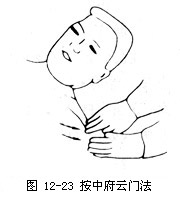 (2)再以两手四指置中府、云门穴,着力长按3~5分钟(如图12—23)。