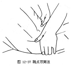 2.操作 术者两手拇指伸直,以拇指指腹置于两侧委中穴处,着力点按(如图12—37)。