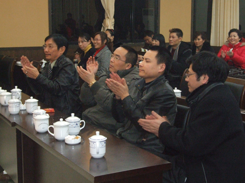 郭会长与参会代表一起观看紫阁保健员工的诗歌朗诵表演