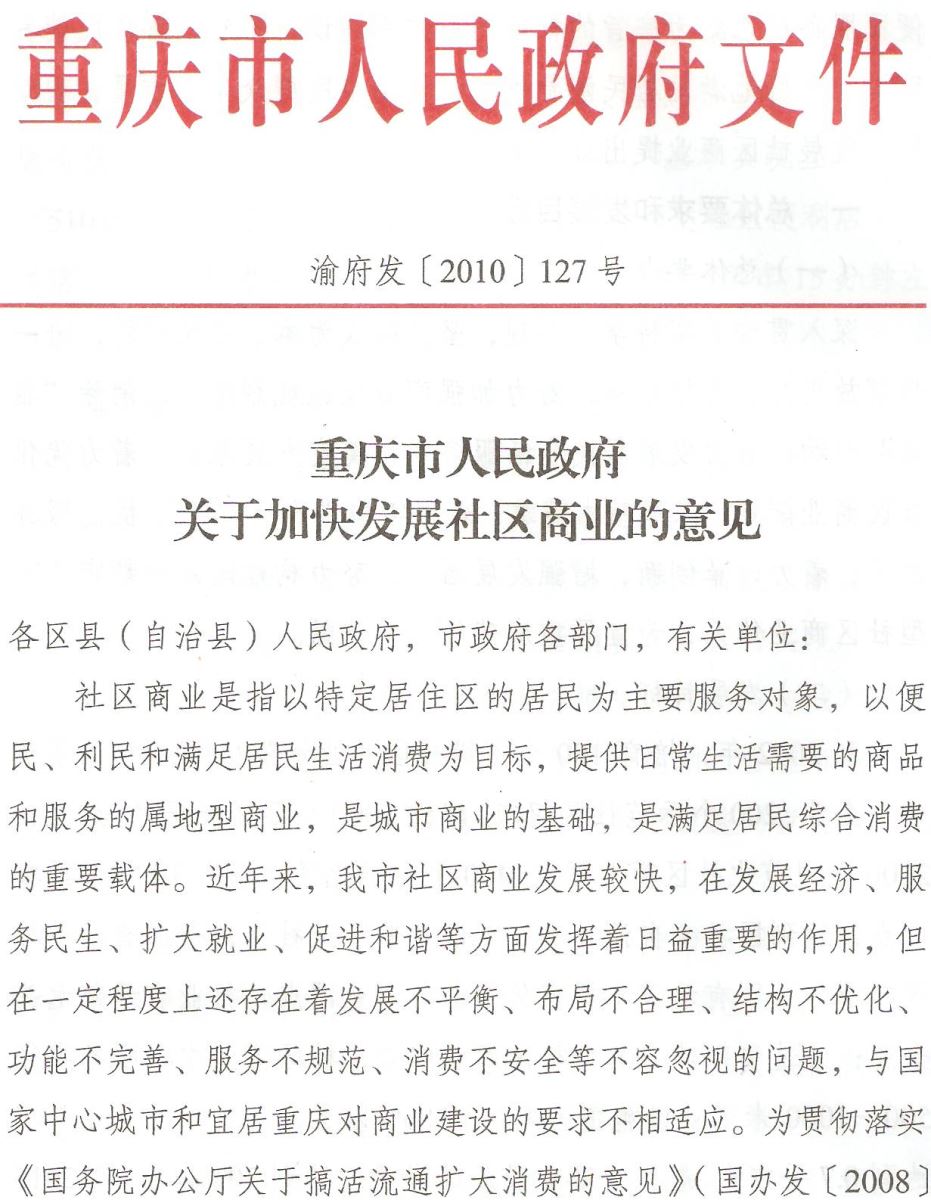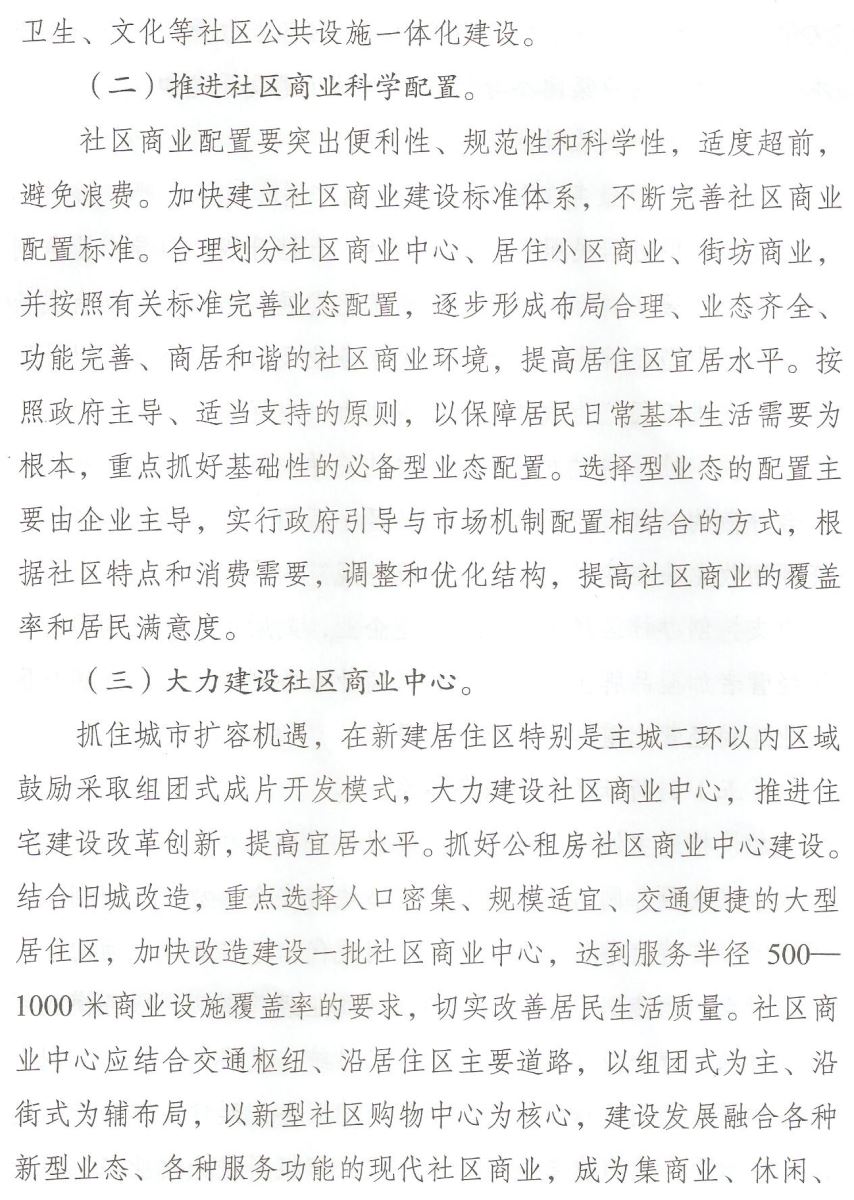 关于加快发展社区商业的意见