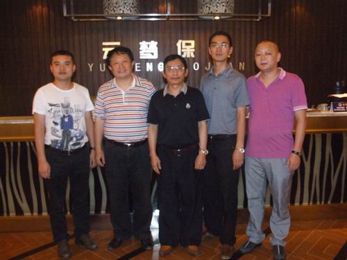 2011年7月28日郭家荣会长(中)、董毅文副会长(左二)、佘大刚副会长(右一)在黔江考察云梦保健