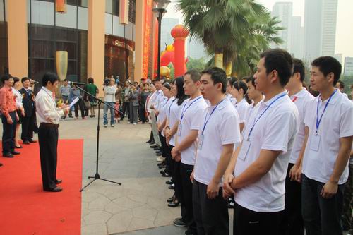 在启动仪式上,首先由承办活动的重庆市保健按摩行业协会的郭家荣会长致辞;青团重庆市委副书记张果同志代表主办方作了热情洋溢的讲话;赛选手代表和裁判组代表上台进行了宣誓。最后由重庆市商业委员会主任助理、党组成员尤祖才同志宣布了“2011年重庆市青年职业技能大赛·足部按摩师技能实作决赛”开赛。