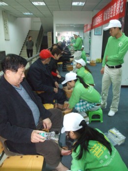 在春回大地、暖意融融、万物复苏的时节,足浴保健行业迎来了全市商贸行业组织开展的“当优质服务标兵,做诚信经营模范”的春风活动。菩提元健康咨询管理公司在足浴保健行业中率先发动门店和员工开展“当优质服务标兵,做诚信经营模范”为主题的活动,并与当地九龙坡区的白鹤社区居委会一道联合开展了学雷锋、做好事、送健康、进社区---“首届足道养生文化节”活动。
