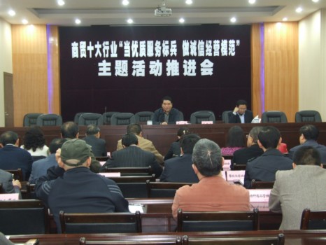 商贸十大行业于2012年3月28日就“当优质服务标兵、做诚信经营模范”主题活动,作细化措施、落实任务的部署推进工作。
