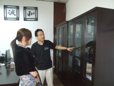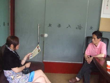 刘总(左)向龙人养生公司项目负责人了解有关情况