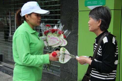 在母亲节准备了1300朵康乃馨