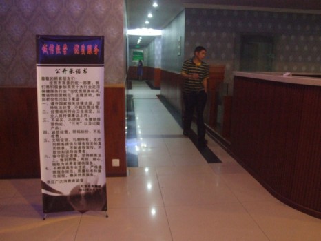 立于大厅的“诚信经营、优质服务”公开承诺书