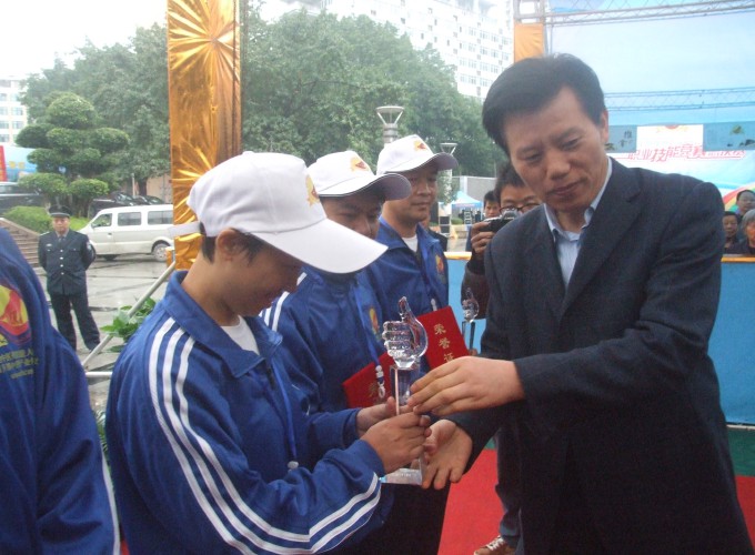重庆市总工会副主席唐军向获奖选手颁奖