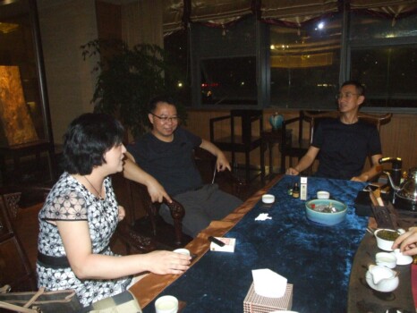 向总与当地的同业协会负责人一起品尝有名的----万州烤鱼