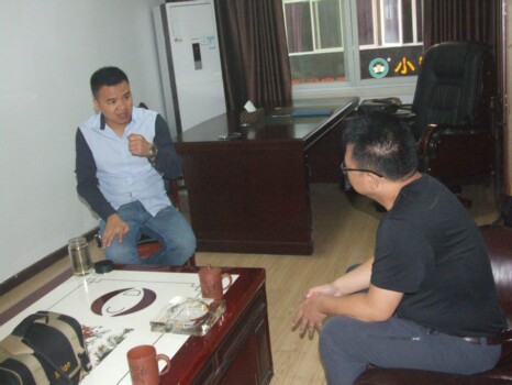 丽草源--品牌按摩精油的创始人向总(左)与六合职校的张校长交流
