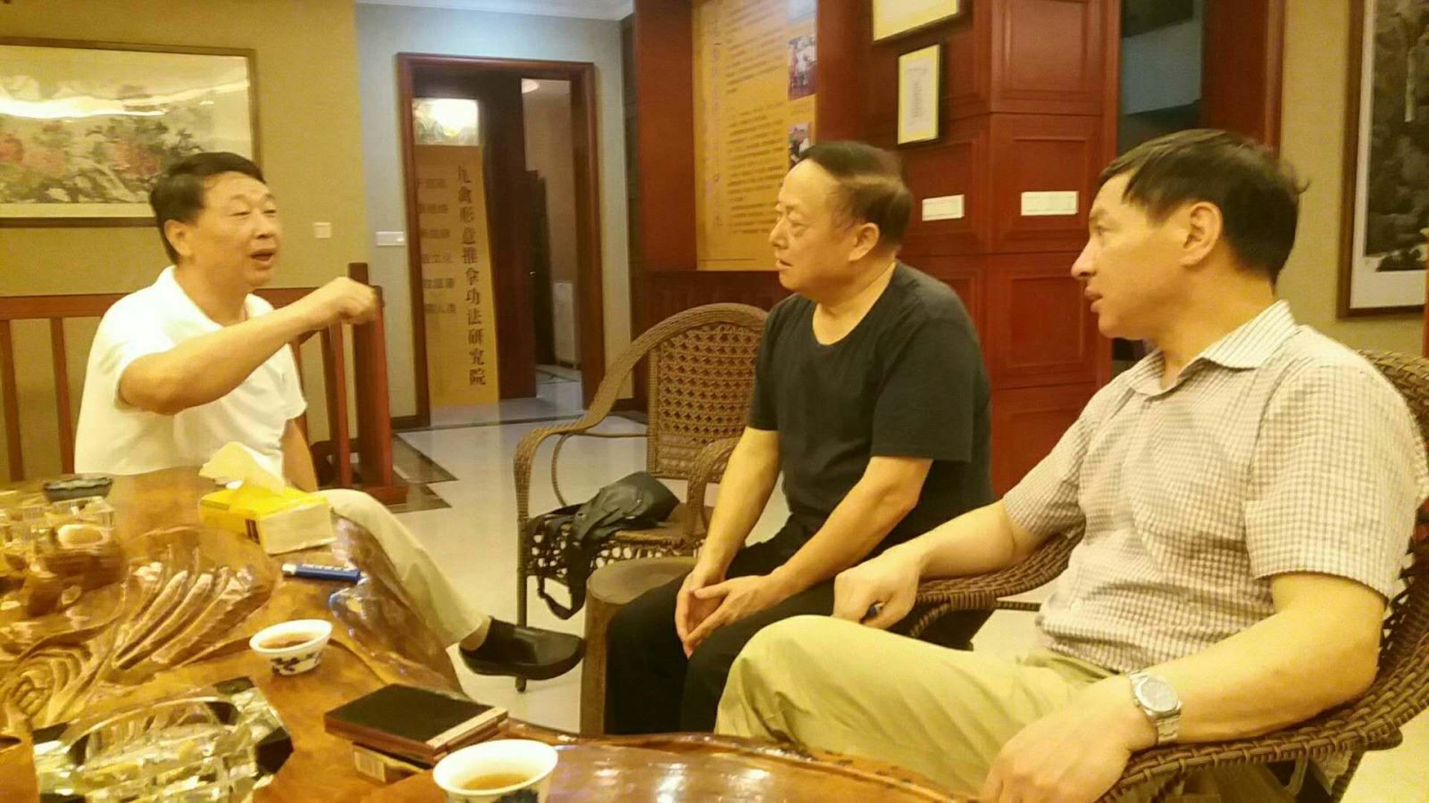 8月23日在协会“会员之家”,会长廖家福等与北京科拓恒通生物技术股份有限公司高级合伙人高瑞军一行三人商谈合作事宜并参观了会员单位中医少林堂,与馆长刘光瑞亲切交谈。