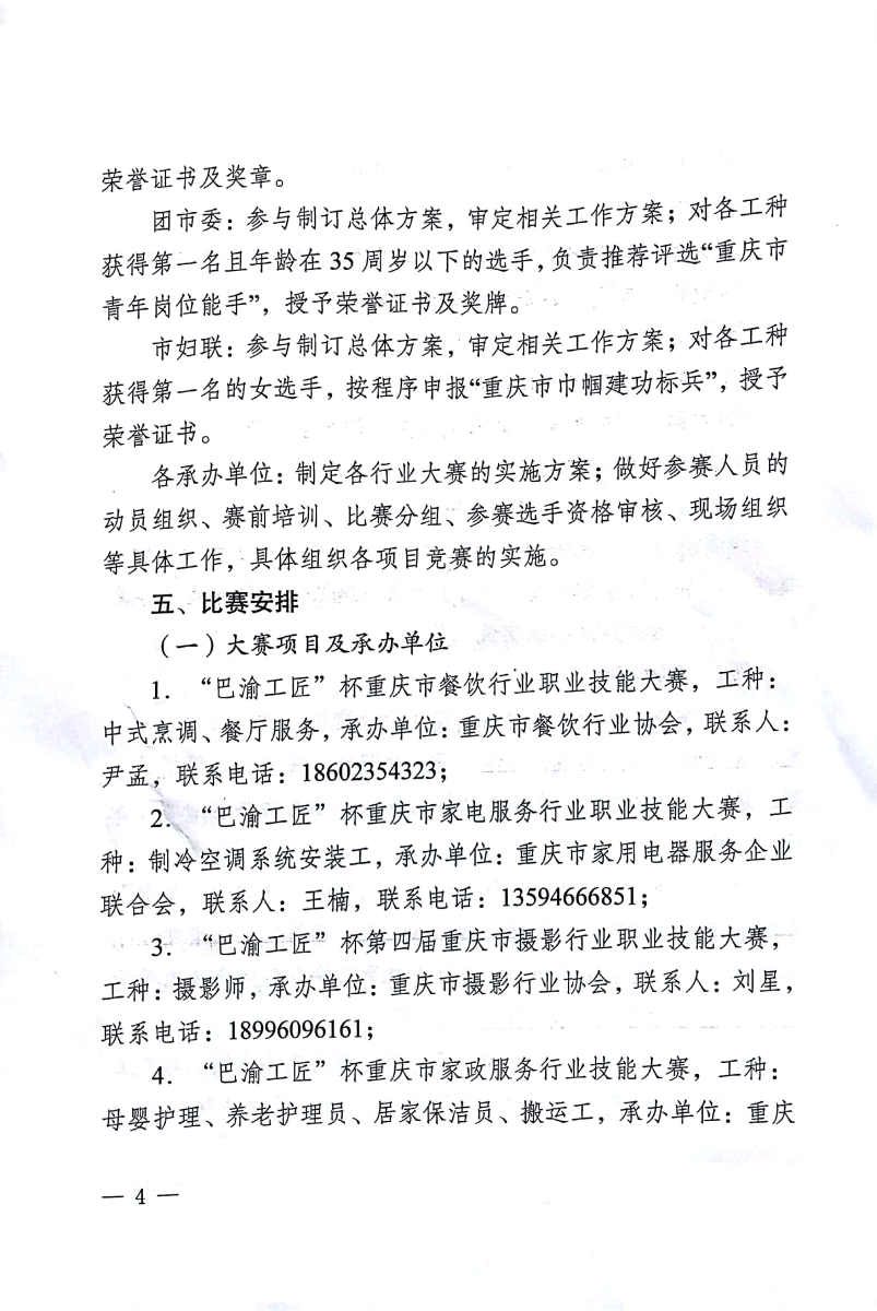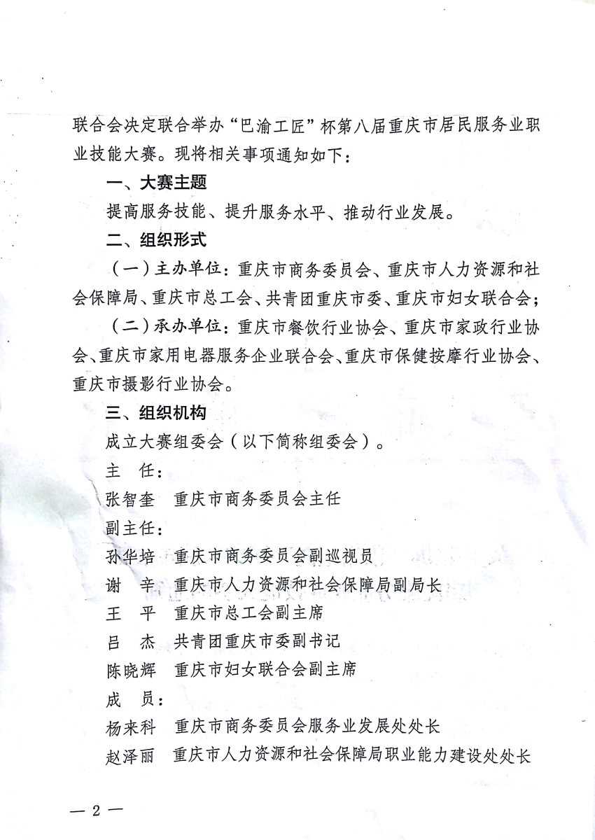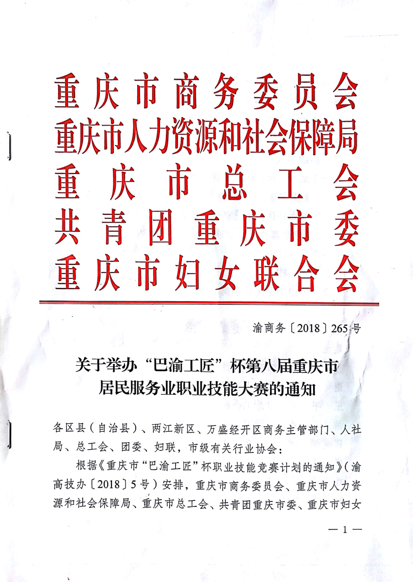 关于举办“巴渝工匠”杯第八届重庆市 居民服务业职业技能大赛的通知
