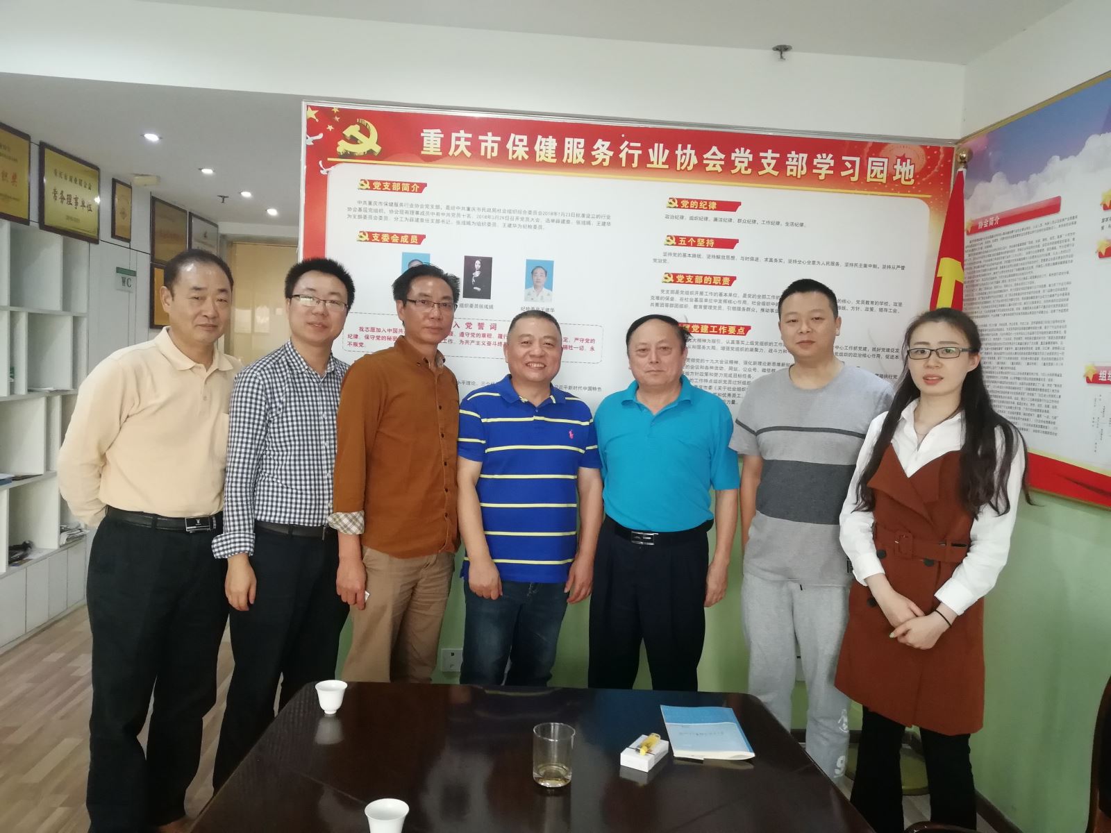 党支部书记薛建泰与重庆市养生健康服务业协会秘书长邱继烈一行交流