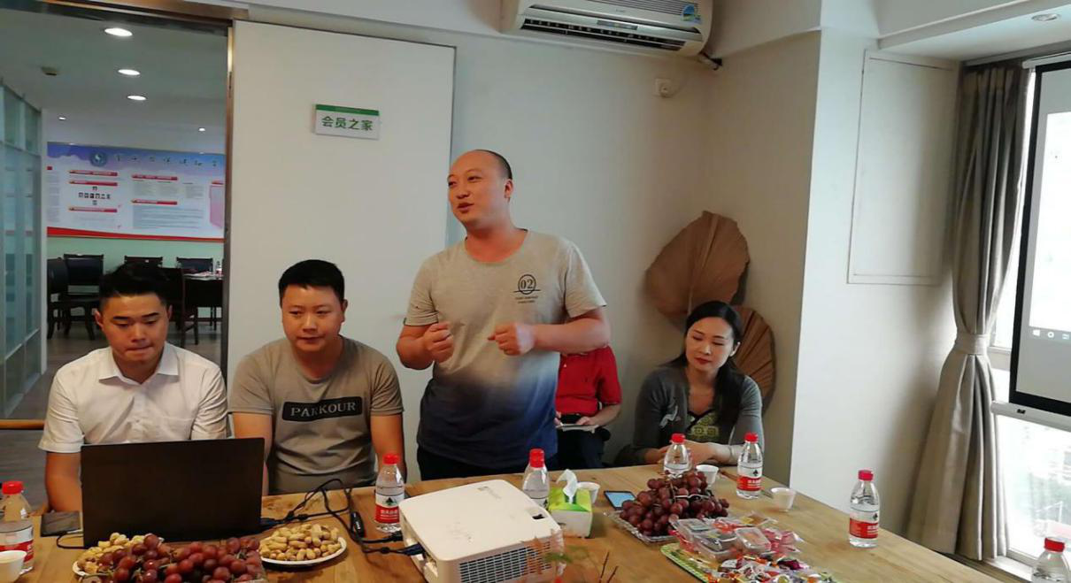 三、新泓宇商贸公司负责人周平东(站立者)在活动中介绍了公司的发展历程和增强服务广大经营单位的措施