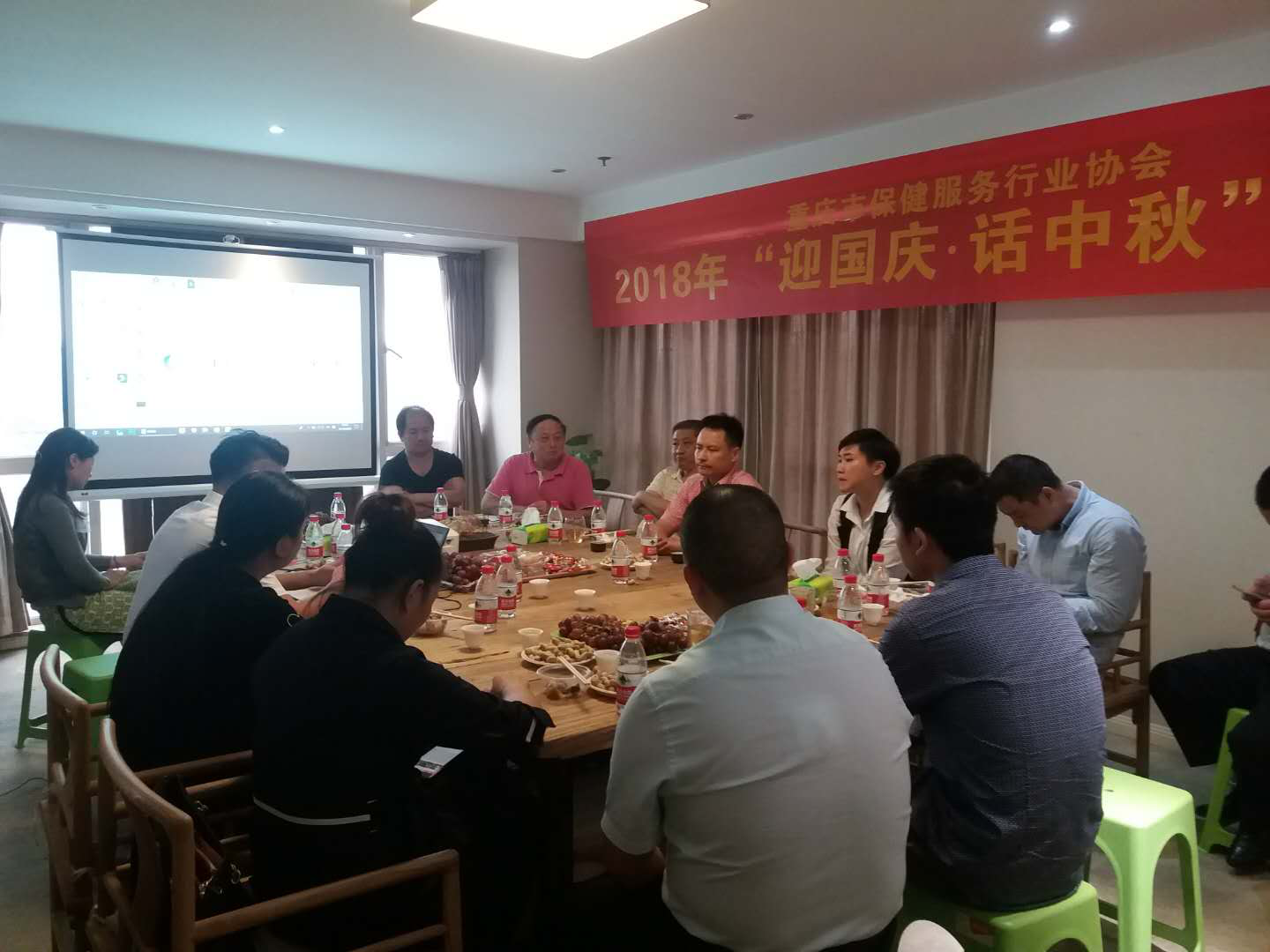 在中华人民共和国成立六十九周年暨中秋佳节来临之际,经协会党支部和会长研究决定,于2018年9月20日下午在协会“会员之家”,协会与成员单位重庆新泓宇商贸有限公司联合举办了“迎国庆·话中秋”活动。党支部书记薛建泰主持了活动,协会理事会成员、监事、顾问委员会的代表、部分新成员等30余人。