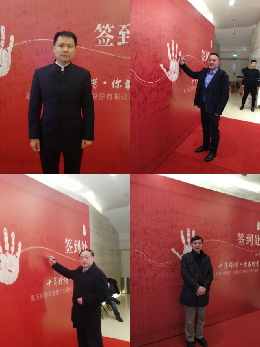 会长廖家福、党支部书记薛建泰、常务副会长胡朝荣、副会长任杰和协会秘书处全体工作人员、小儿推拿专委会全体成员、其它专委会筹备组负责人参加重庆新骄阳健康产业股份有限公司十周年庆典活动,祝贺新骄阳健康产业股份有限公司十年来取得的丰硕成果。