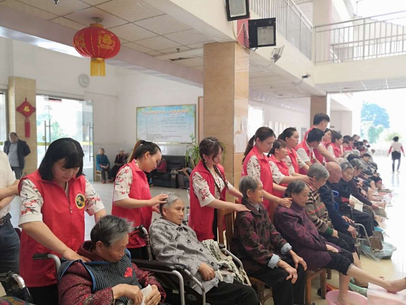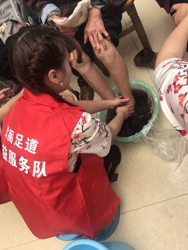 一次别开生面的活动,一次有意义经程。在重庆市大足区就有这样一群内心充实而又美丽的人——听画足道与紫阁足道的员工们。听画足道与紫阁足道全体员工在重庆市保健服务行业协会副会长、听画足道与紫阁足道董事长周咏梅的带领下,去当地社会福利院为老人们开展保健服务。她们带着自己的善心与专业技能去到福利院,有的员工还带上自己的孩子参加活动,在这过程中,他们耐心地与老人聊天,听老人说心事,为老人洗脚、进行头肩部按摩、耳部调理等,让福利院的老人们享受到实在在的保健服务。