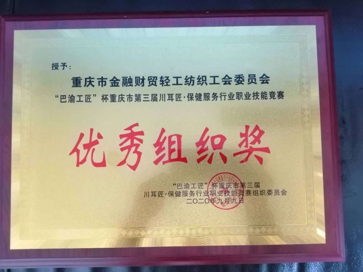 2020年9月29日上午,由 重庆市商务委员会、重庆市人力资源和社会保障局、重庆市总工会、共青团重庆市委、重庆市妇女联合会联合举办的“巴渝工匠”杯第十届重庆市居民服务业职业技能大赛总决赛在重庆商务职业学院成功举行。本次赛事的成功举办仰赖于各政府部门、协会和工作人员的大力支持、统筹及协调,重庆市保健服务行业协会有幸参与本次赛事并取得圆满成功离不开市金融财贸轻工纺织工会的帮助和支撑,在“巴渝工匠”杯重庆市第三届川耳匠·保健服务行业职业技能竞赛暨“巴渝工匠”杯第十届居民服务业保健服务项目决赛选拨赛中,工会不辞辛苦,领导协会积极进行,重庆金融财贸轻工纺织工会主任杨松、重庆金融财贸轻工纺织工会副主任赵耀、重庆金融财贸轻工纺织工会周艳等先后到访协会询问进度,更是为本次赛事理论考试严肃认真的筛选了试题,保证赛事的公平公正,正式比赛时,各位领导也莅临了现场,对参赛选手表达了真切的祝愿和慰问。在此,协会表示十分诚挚的感谢!同时祝贺市金融财贸轻工纺织工会获得“巴渝工匠”杯第十届重庆市居民服务业职业技能大赛总决赛优秀组织奖!