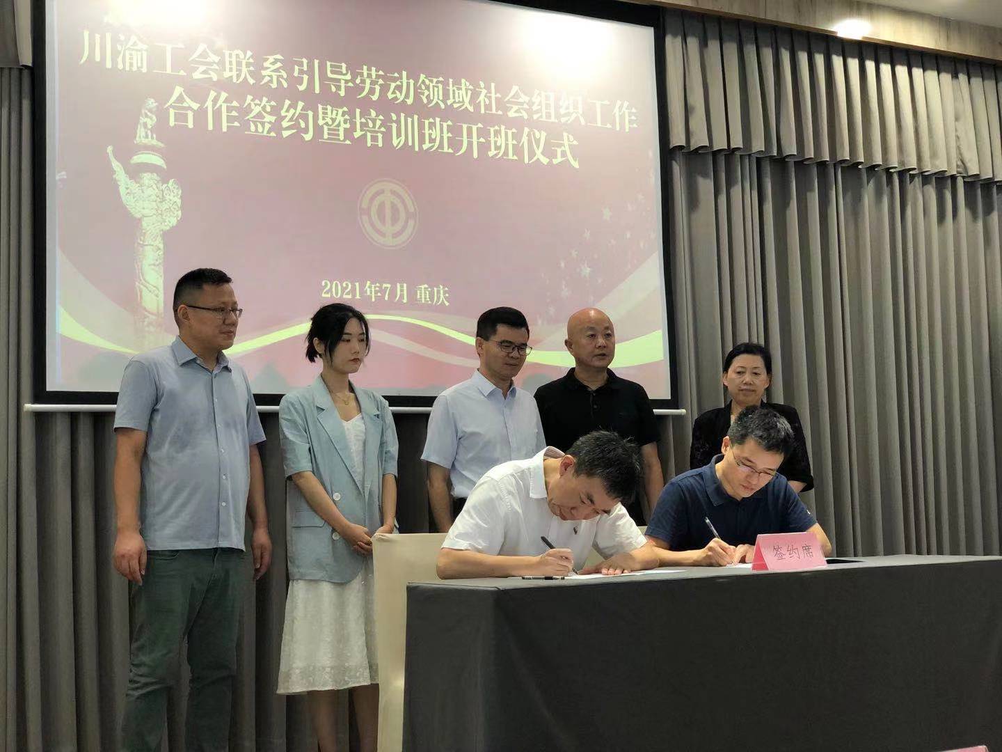 重庆市总工会职工权益维护中心主任陈琳参加开班和签约仪式。