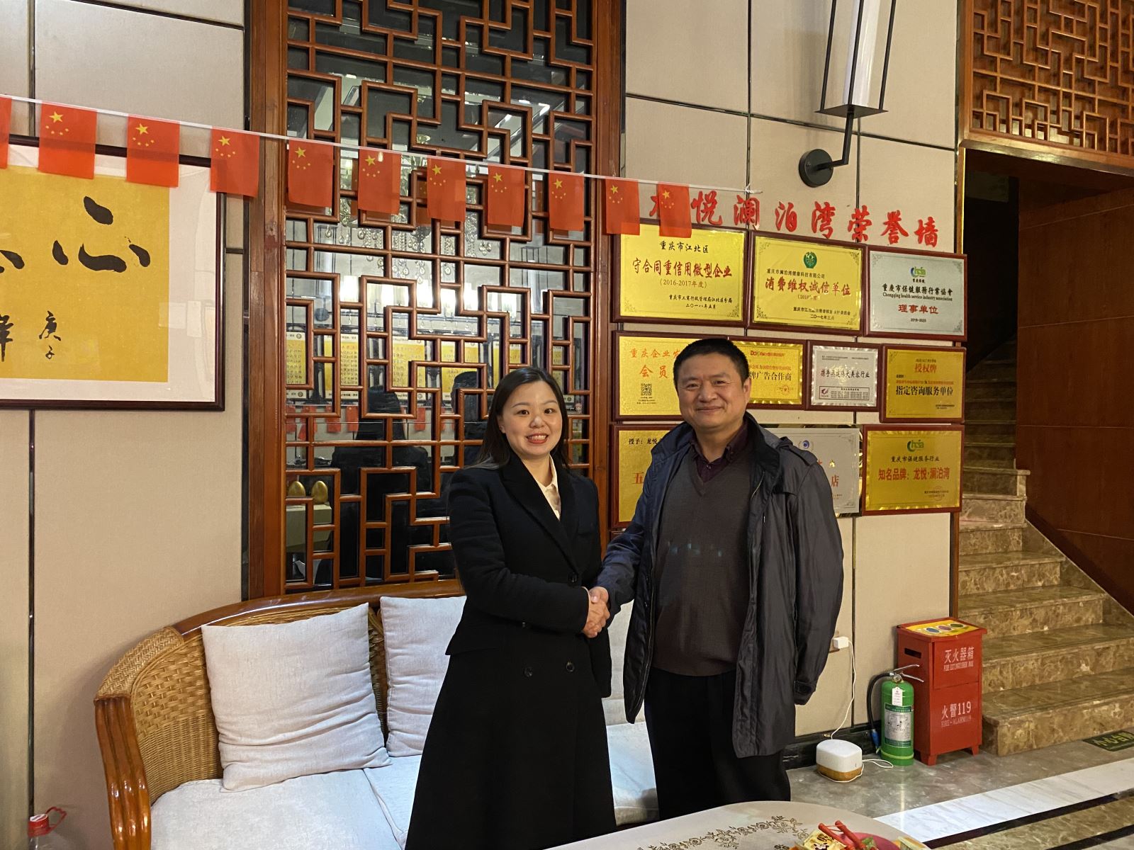 11月15日下午,协会执行秘书长张哲率秘书处工作人员,前往位于大石坝东原商圈的龙悦·澜泊湾SPA养生中心。