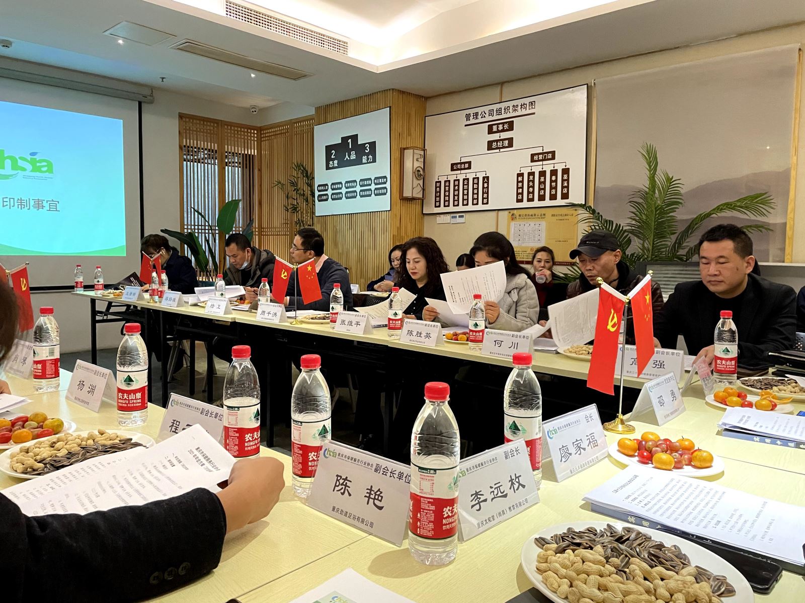 会议通过了以下决议: 1、同意举办重庆市保健服务行业协会三届五次会员大会暨2021年年会;2、同意年会筹备小组总指挥:廖家福,副总指挥:邵勇、周咏梅、王雷,顾问: 周旭东;2、同意印办协会专刊事宜;3、同意成立:行业自律专委会、康复调理专委会、供应商联盟、区县联络处。