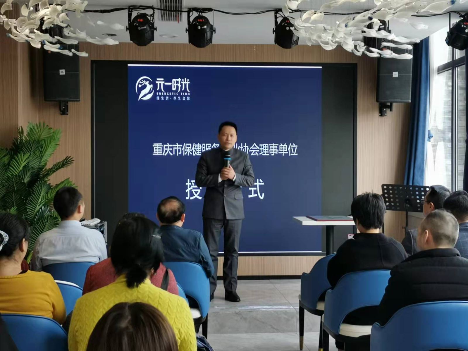 廖家福会长在元一时光职工大会上发表了热情洋溢的致辞,欢迎元一时光加入协会大家庭。现场举行了理事单位授牌仪式。