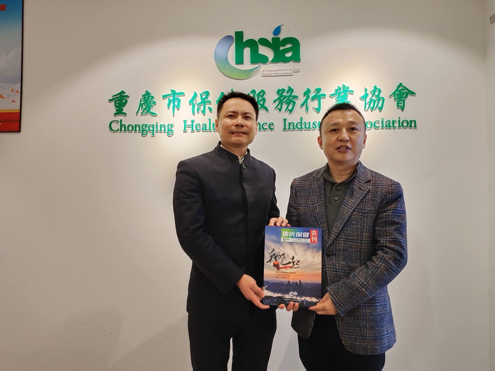 湖北省足浴协会陈红奎会长率领团队,2019年6月30来到重庆,两会经过互动互访,结为友好协会。