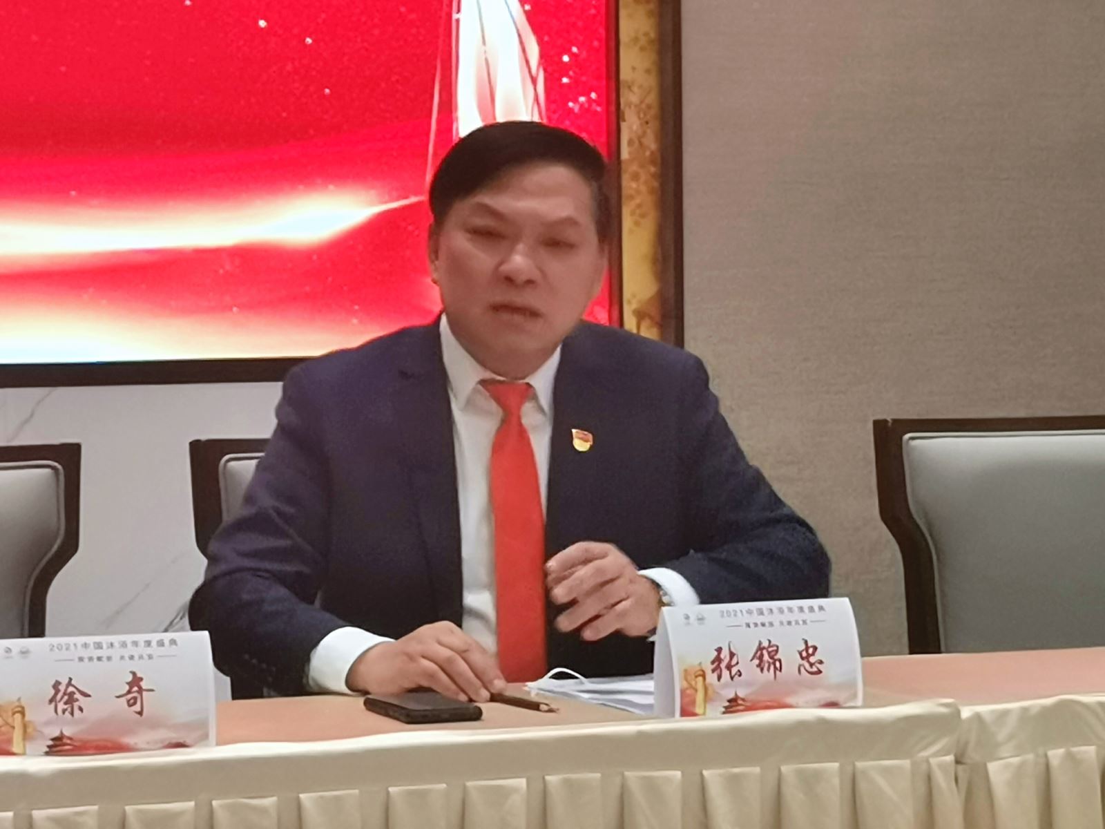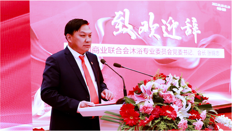 在年度盛典大会上,中国商业联合会沐浴专业委员会党委书记、会长张锦忠发表了热情洋溢的讲话。