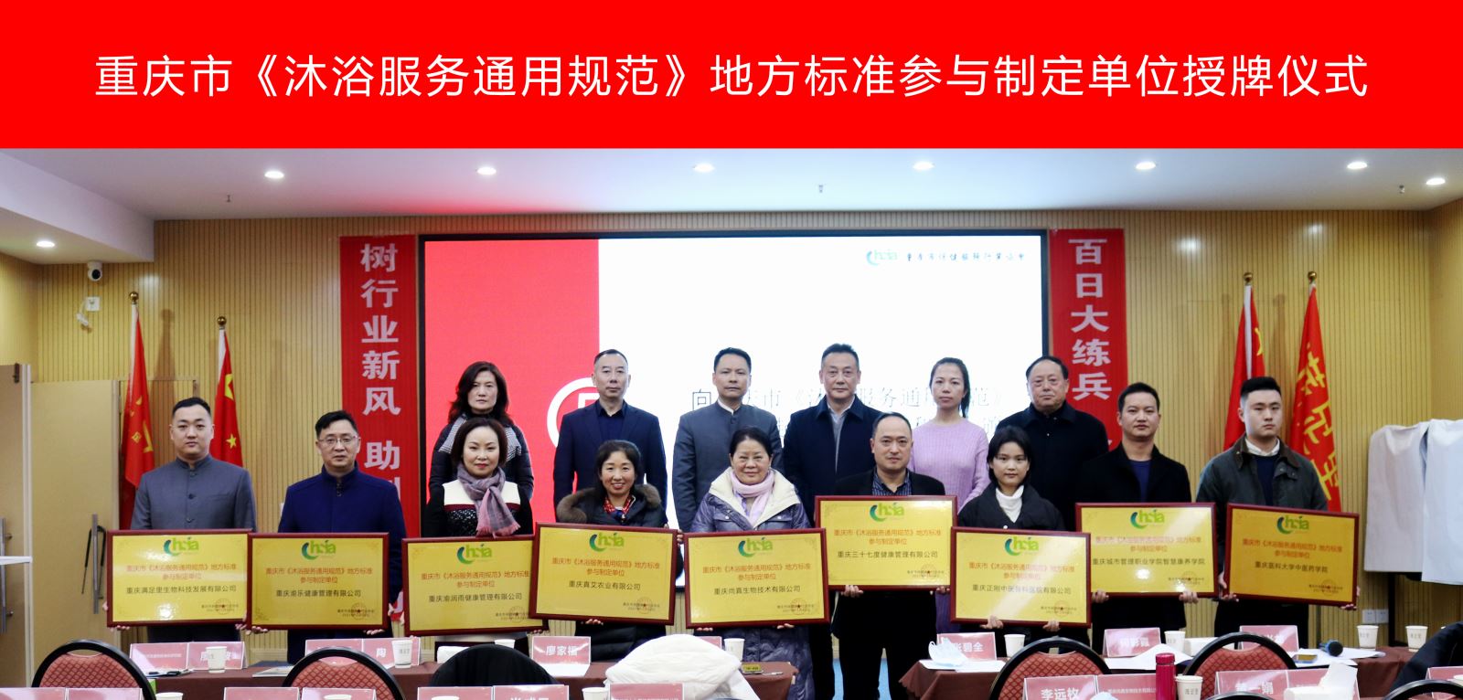 标准参与制定单位:重庆市保健服务行业协会、重庆市质量和标准化研究院、重庆医科大学中医药学院、重庆城市管理职业学院智慧康养学院、重庆正刚中医骨科医院有限公司、重庆三十七度健康管理有限公司、重庆尚真生物技术有限公司、重庆成云企业管理咨询有限公司、重庆真艾农业有限公司、重庆川耳匠文化传播有限公司、重庆听画健康管理有限公司、珠海市佳晶洁化妆品有限公司、重庆渝润雨健康管理有限公司、重庆渝乐健康管理有限公司、重庆满足里生物科技发展有限公司、重庆劲道足浴有限公司,参会并授予了匾牌。