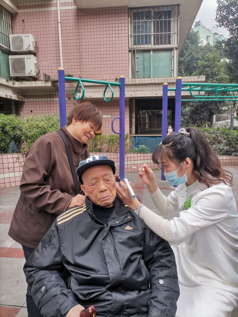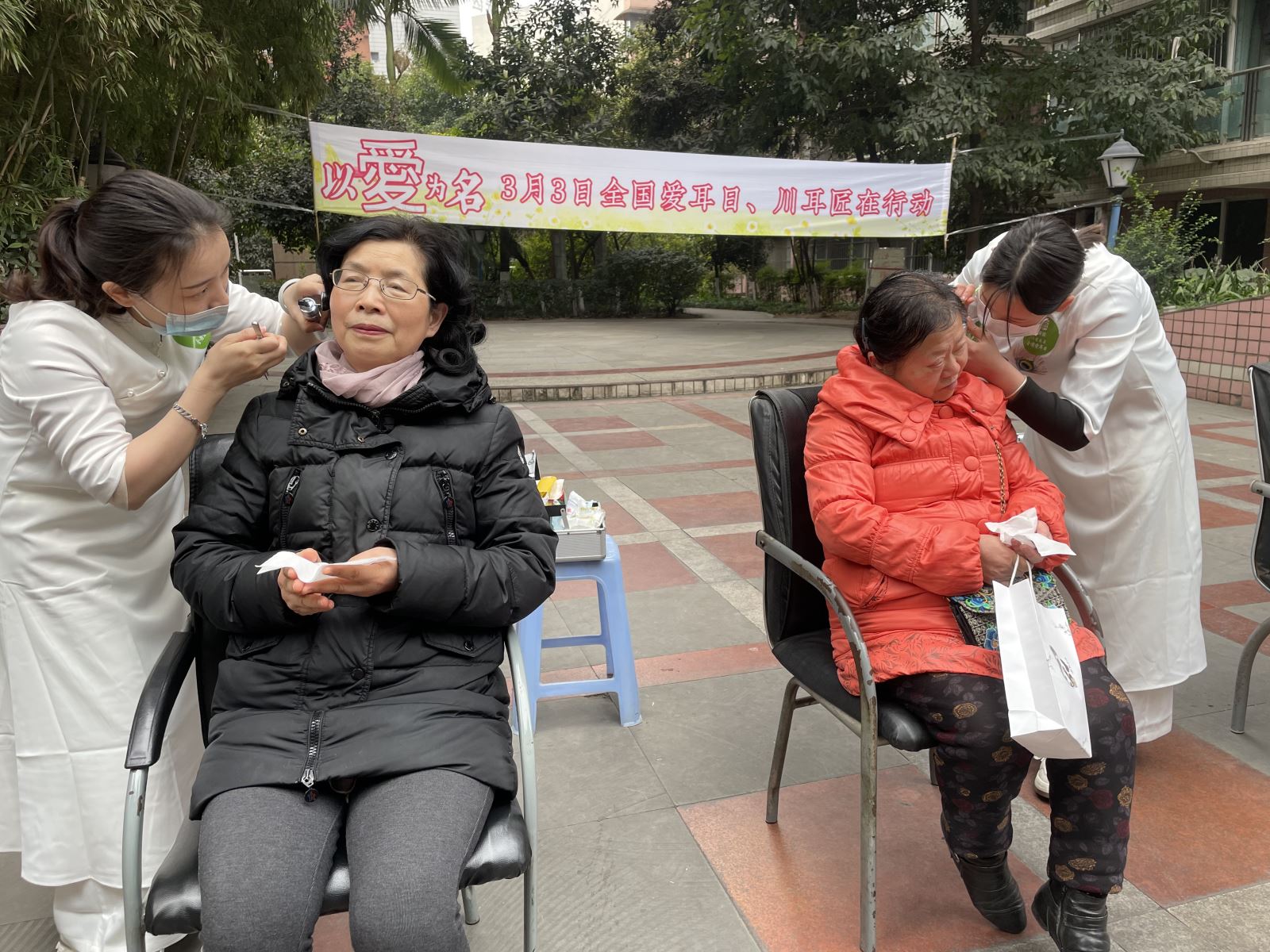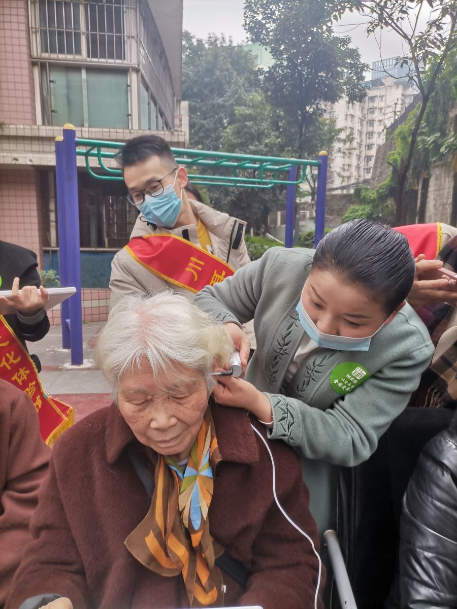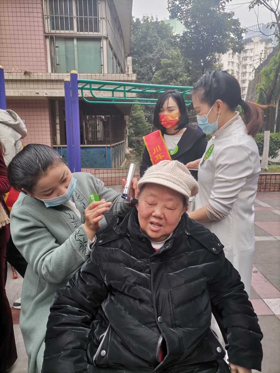 重庆市保健服务行业协会支部前书记薛建泰、川耳匠耳艺金牌培训讲师王雪梅,分别宣讲了“爱耳日”的缘起和爱护耳朵的重要意义,并组织采耳调理技师为社区市民进行了义务采耳调理服务。