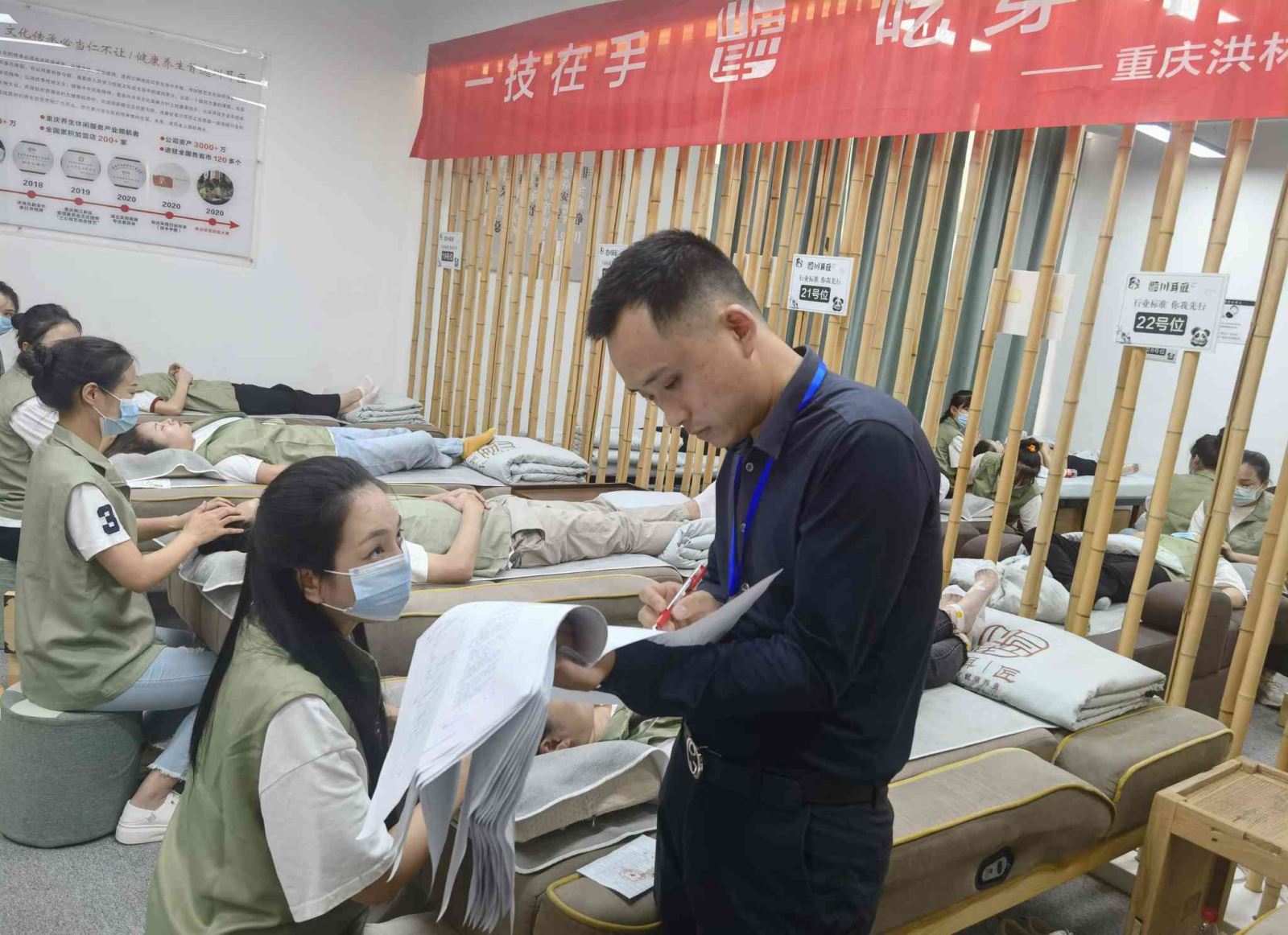 重庆市职业技能鉴定指导中心蹇晓林主任,重庆市保健服务行业协会胡朝荣会长 、邵勇书记等领导,莅临现场进行了指导。